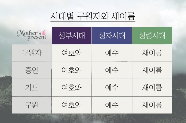 마찬가지로 시대가 바뀌었으니 성령시대 구원자의 이름도 바뀌어야 합니다.